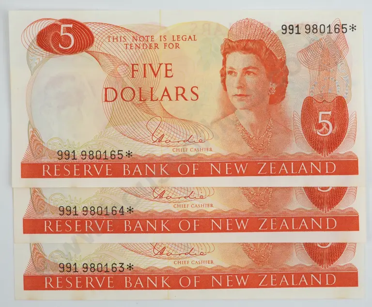 Consecutive Lot of Three Five Dollar Hardie Star Banknotes UNC CV $240