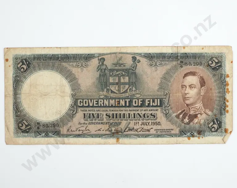 1950 Fiji Five Shilling Banknote
