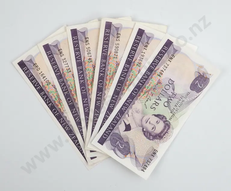 Six New Zealand Two Dollar Brash Banknotes