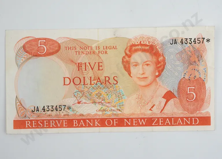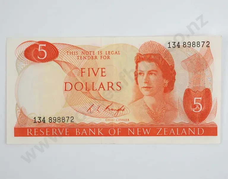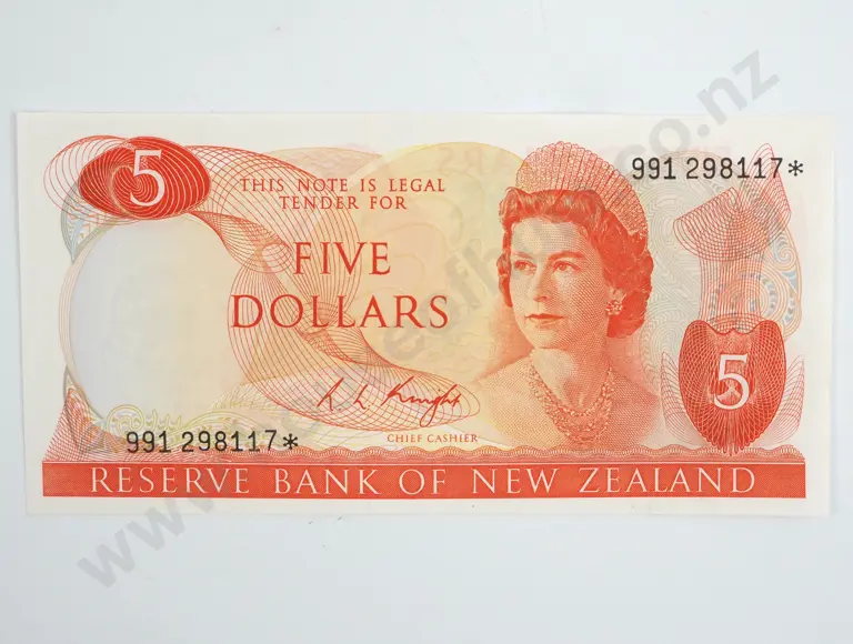New Zealand Five Dollar Knight Star Banknote AUNC
