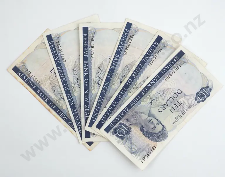 Six 10 Dollar New Zealand Knight Banknotes - Better Grades