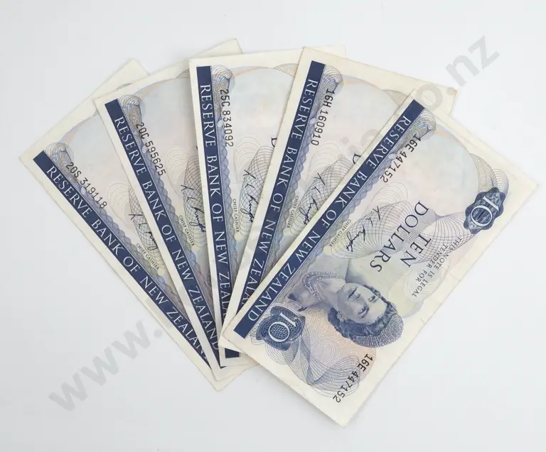 Five 10 Dollar New Zealand Knight Banknotes - Better Grades