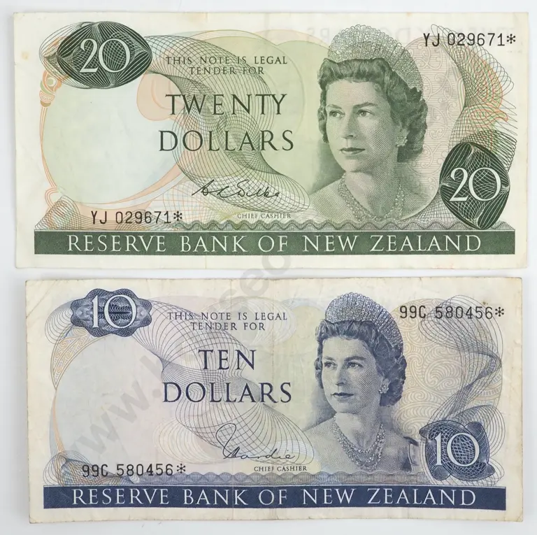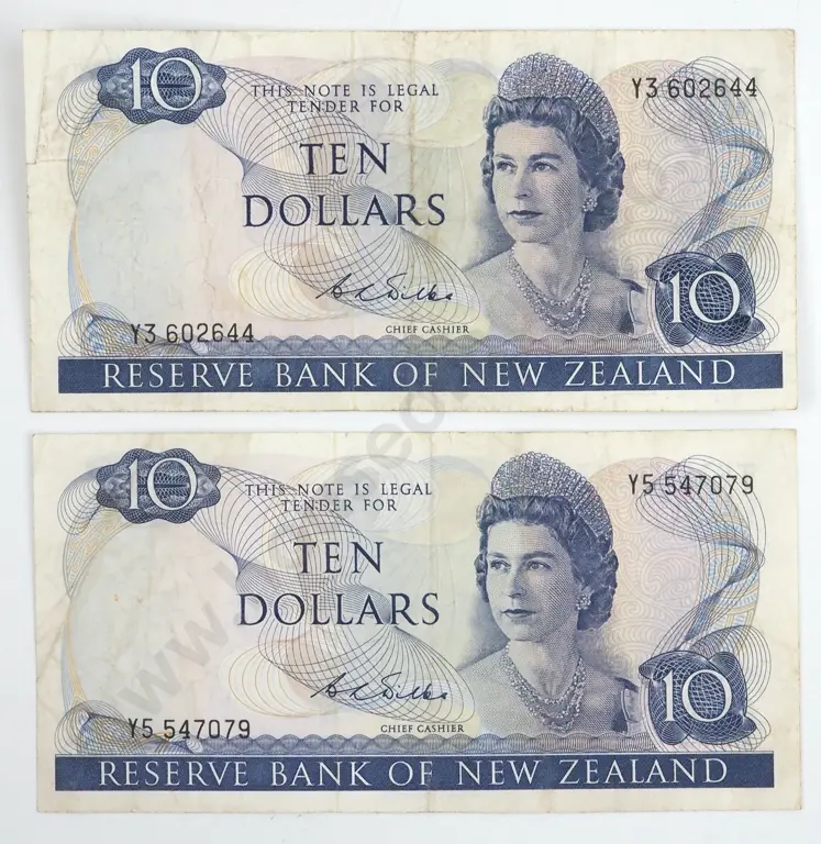 Two 10 Dollar New Zealand Wilks Banknotes