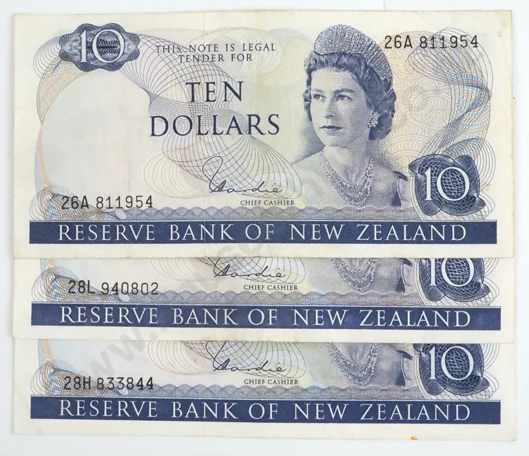 12 New Zealand Ten Dollar Banknotes