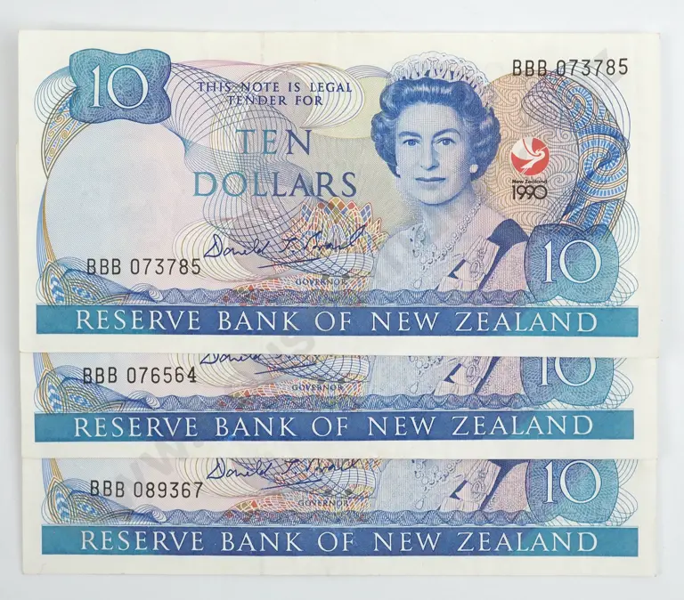 Three 1990 Ten Dollar Brash Banknotes BBB Prefix
