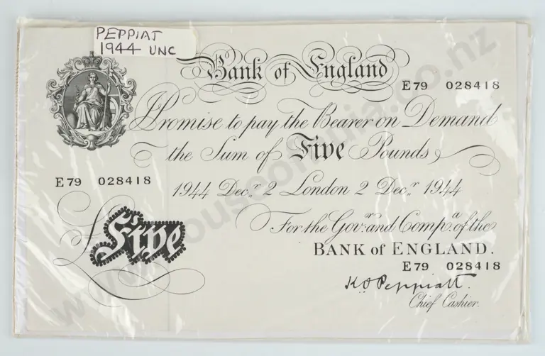 1944 United Kingdom UNC Peppiatt Five Pound Banknote