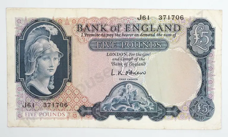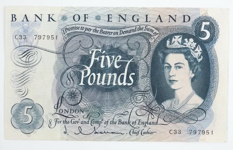 1961-62 United Kingdom Five pound Banknote - VF +