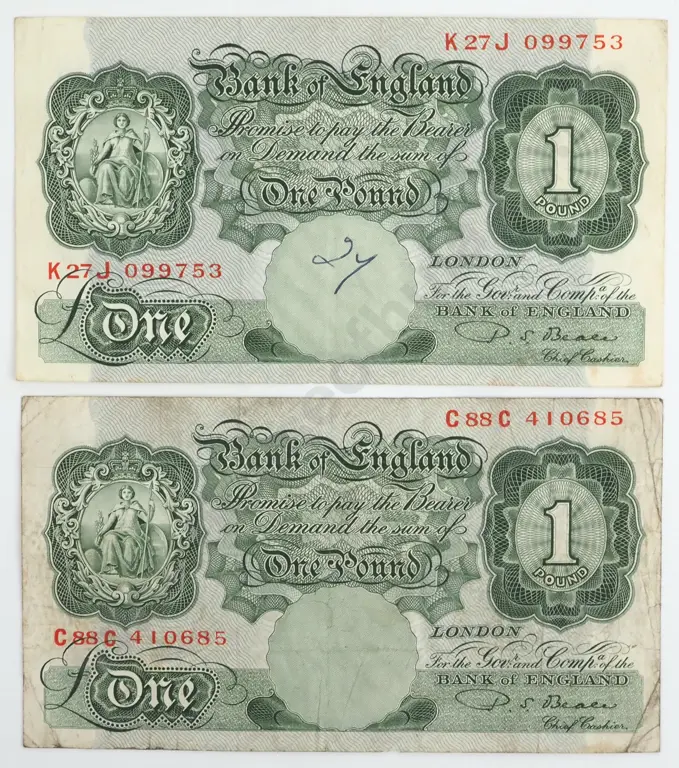 Two United Kingdom One Pound Banknotes