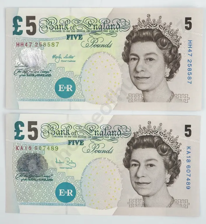Two United Kingdom Five Pound UNC Banknotes