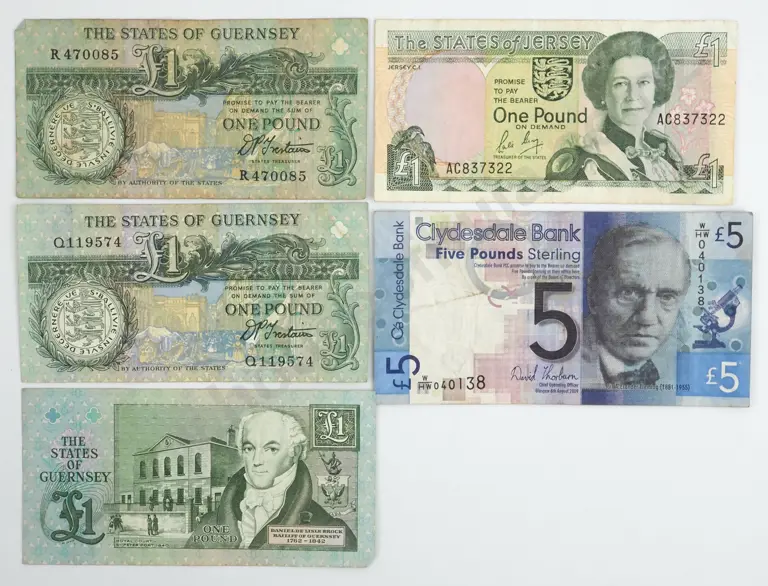 Five Bank of Scotland One Pound Banknotes & Ten Shilling Bank of England Banknote