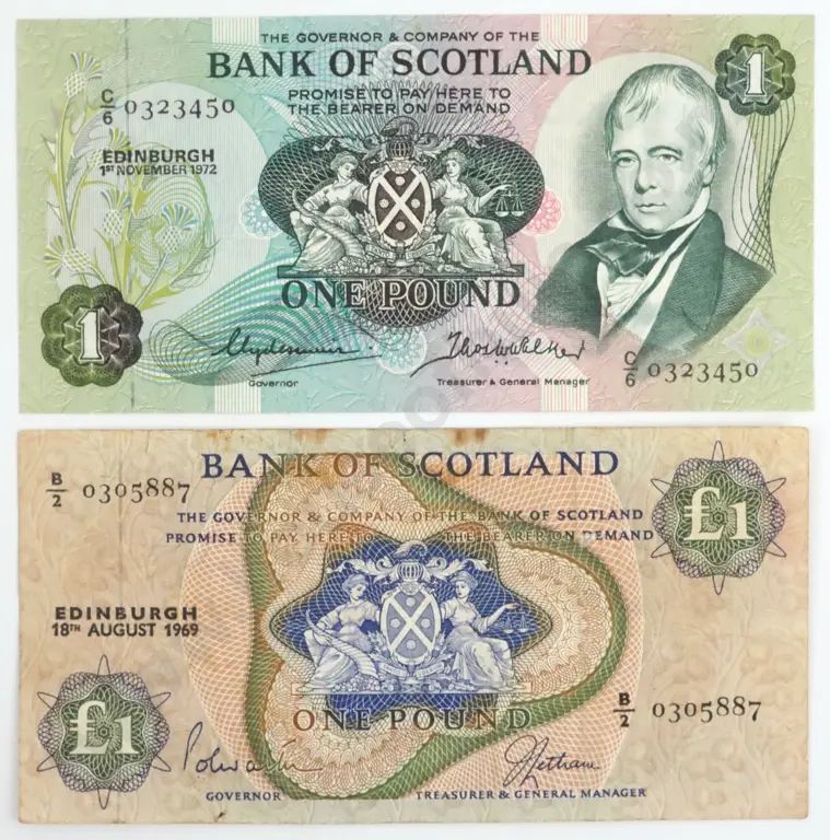 Two Bank of Scotland One Pound Banknotes