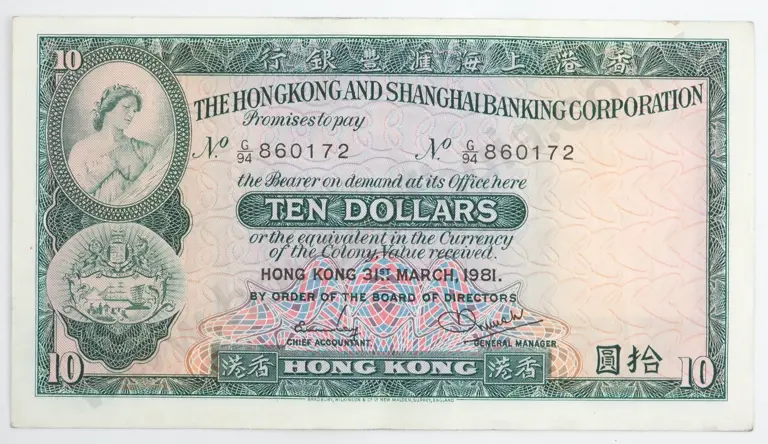 Hong Kong HSBC Ten Dollar Banknote