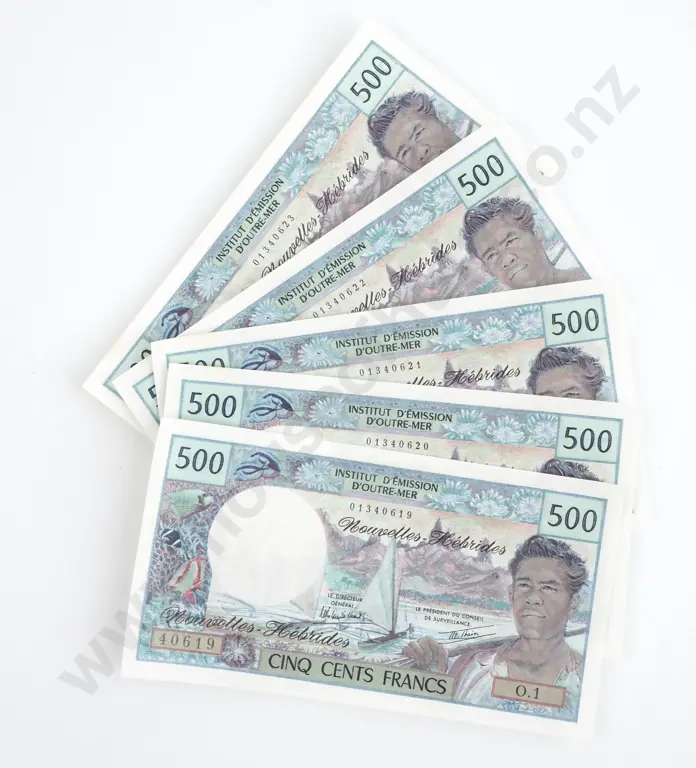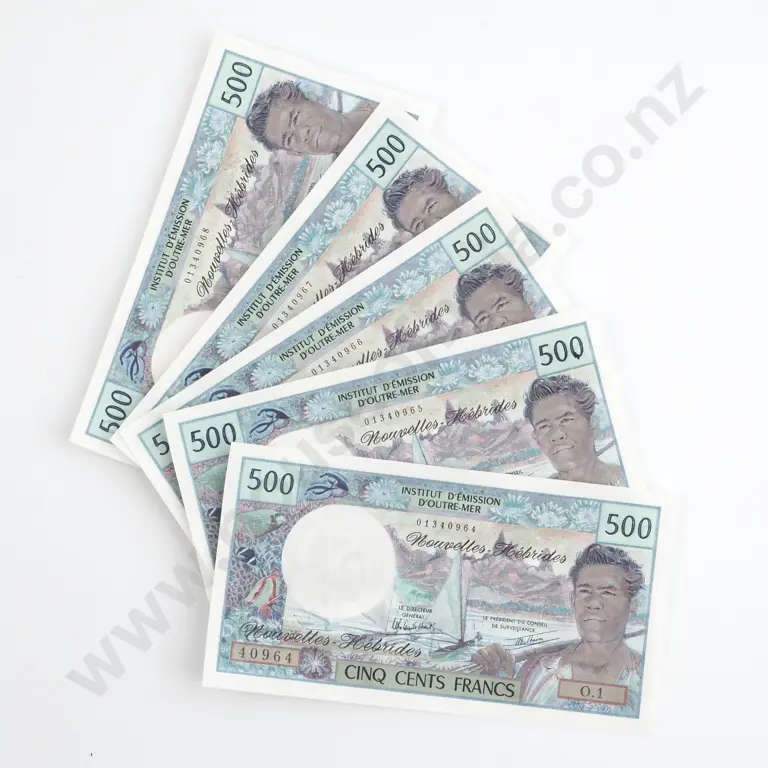 5 Consecutive New Hebrides 500 Francs - Paper Rippled as Issued - CV $675 USD