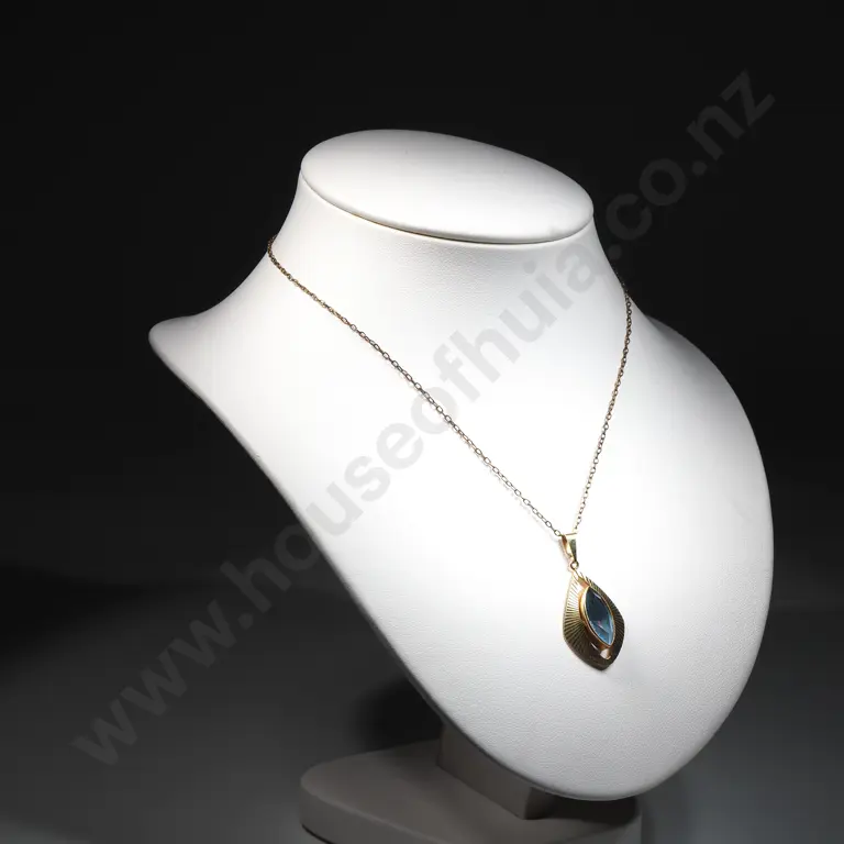 Blue Gem Gold Tone Style Pendant & Gold Tone Chain