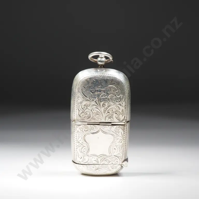 Sterling Silver Vesta Box w Scroll & Leaf Decoration - Initials DMJ