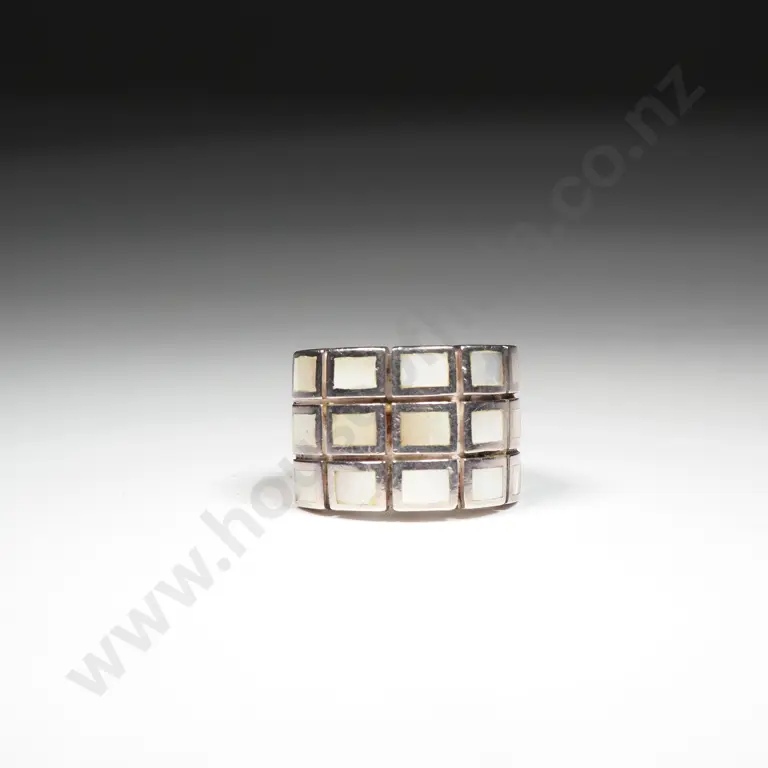Sterling Silver Modernist Ring Set w Mother of Pearl