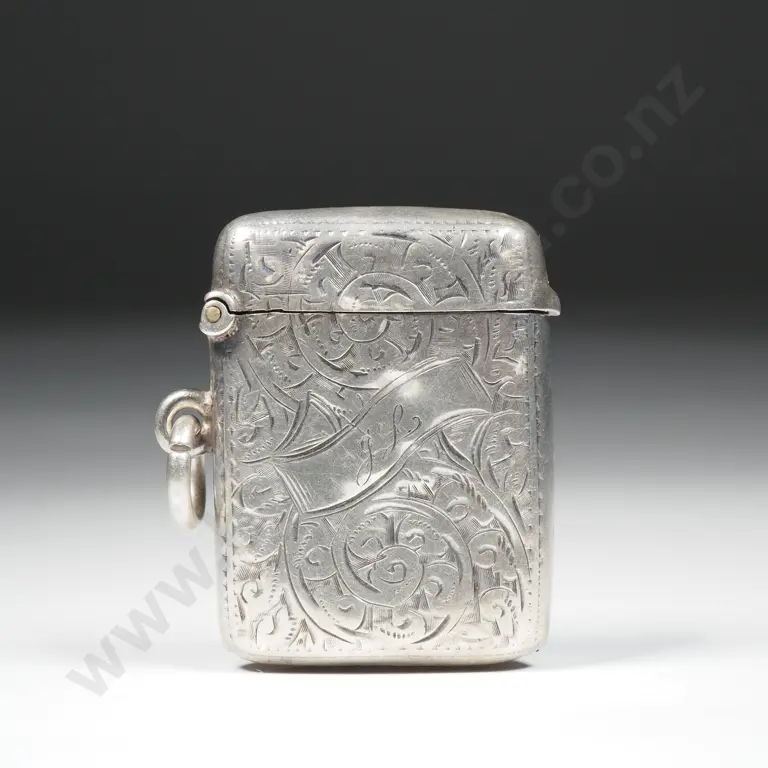 Sterling Silver Vesta Box with Scroll Decoration & The Initials JL In A Ribbon Cartouche