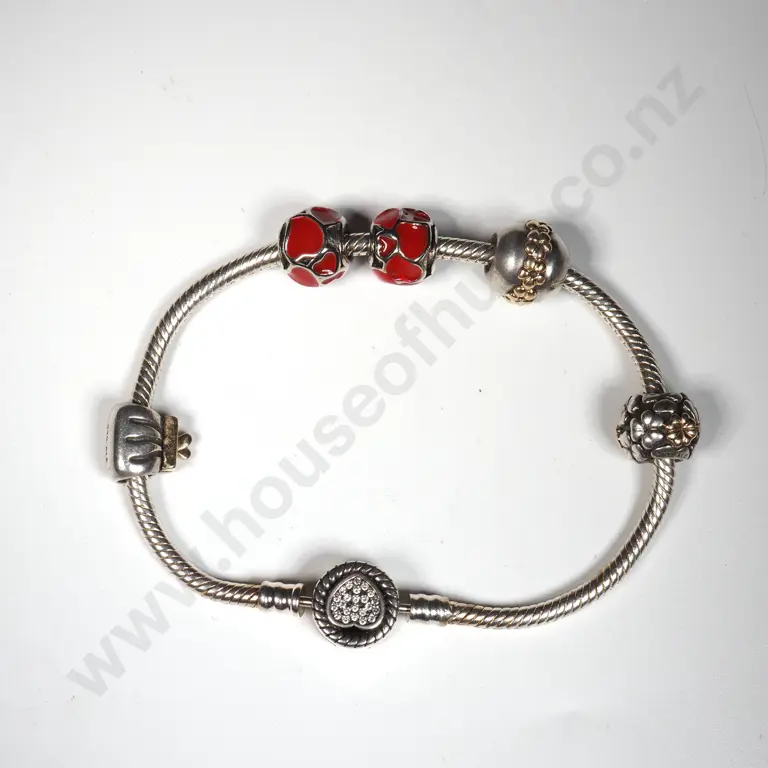 Sterling Silver Pandora Bracelet w Charms