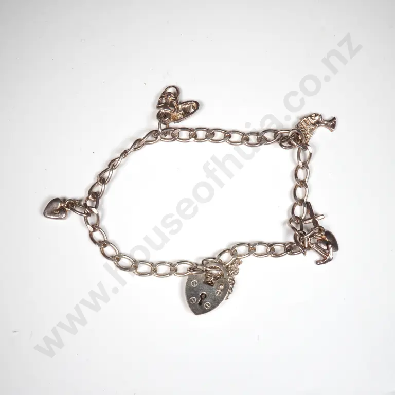 Sterling Silver Charm Bracelet w Small Charms & Heart Locket