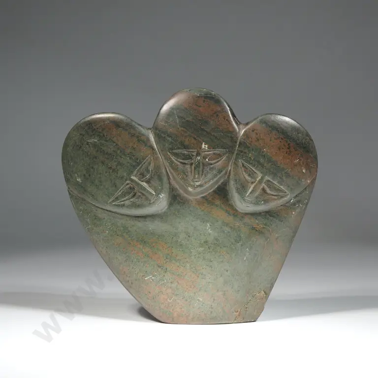 Shona Stone Sculpture Probably From Zimbabwe Featuring Three Stylised Faces