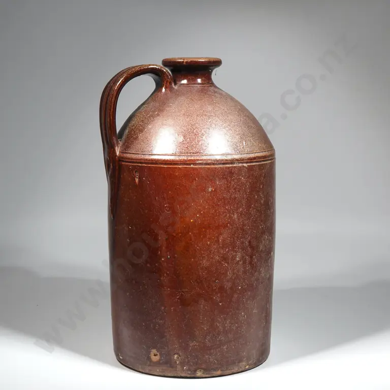 Luke Adams Brown Glazed Crock w Strap Handle. Marked To Base. Circa 1930