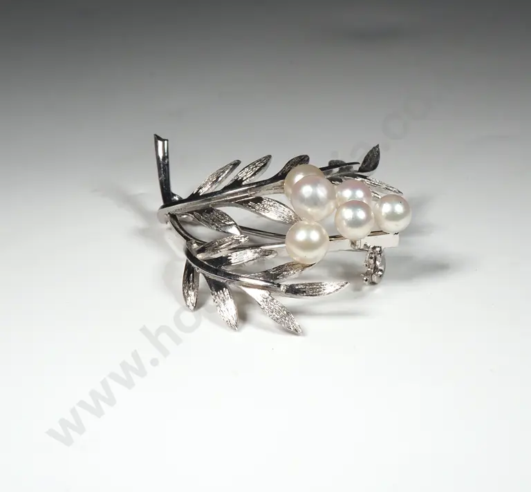 Boxed Toyomoto Sterling Silver & Cultured Pearl Brooch
