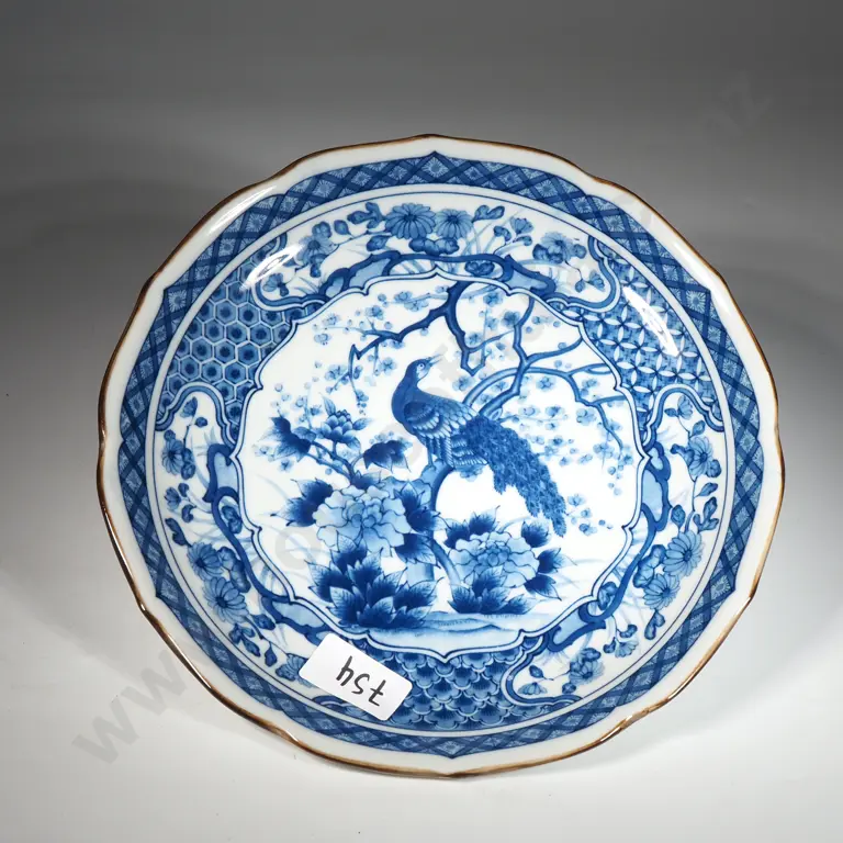Imari Lidded Porcelain Bowl In Rust Red & Cobalt Blue Colouring.