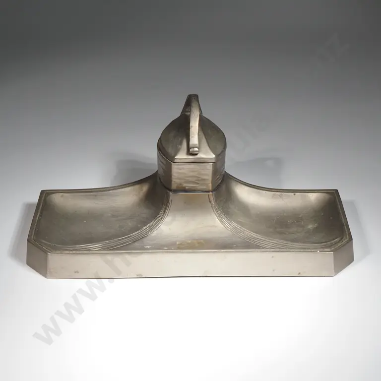 Antique Art Nouveau Cast Iron Desk Set w Two Glass Inkwells & Pen Rest