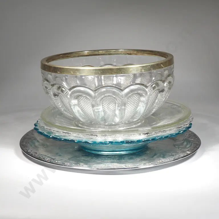 Pressed Glass NZ Centennial Sugar Bowl & Cream Jug & A Small Glass Inkwell