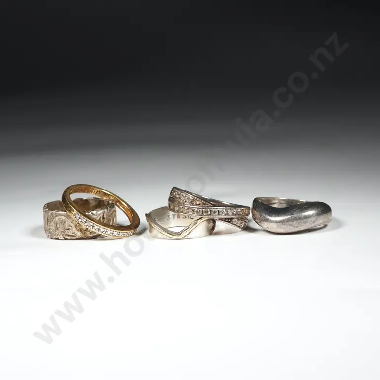 Six Sterling Silver Rings .All Set With Stones