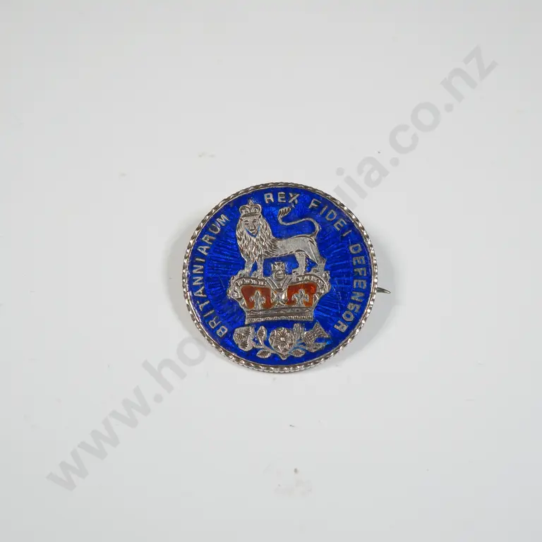 Victorian Sterling Silver & Enamel 1825 Shilling Brooch