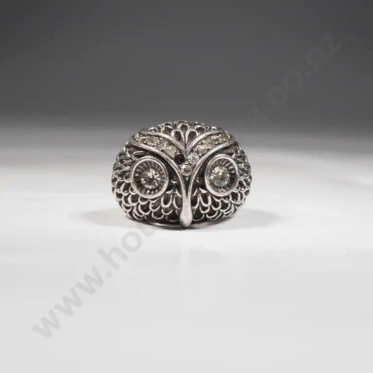 Sterling Silver Karen Walker Style Owl Ring Set w White Stones