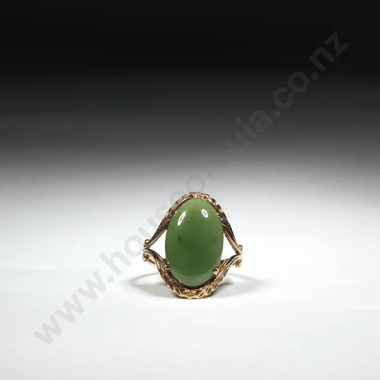 Vintage 9ct & Oval Greenstone Ring with Split Scroll Setting