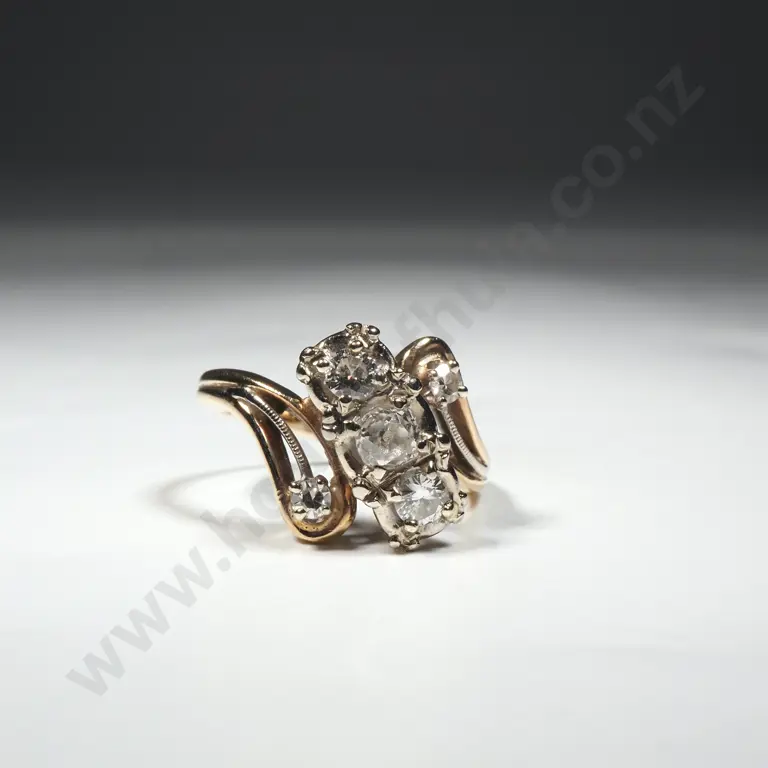 Exquisite Edwardian 18ct Gold Five Diamond Bridge Ring w Valuation $2,796.00