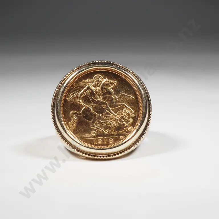 1958 Full Gold Sovereign Ring in Substantial 9ct Gold Mount