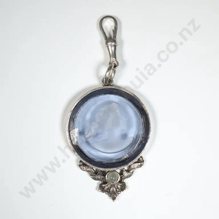 Lovely Carved Glass Pendant w Sterling Silver Clip