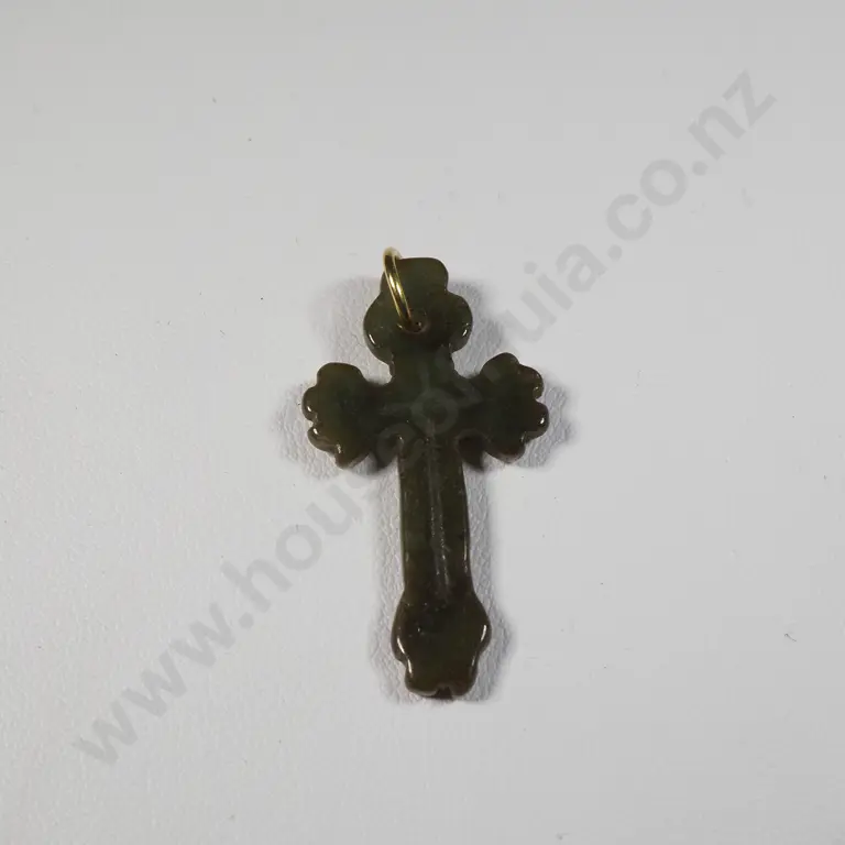 Vintage Gold & Diamond Shaped Greenstone Brooch