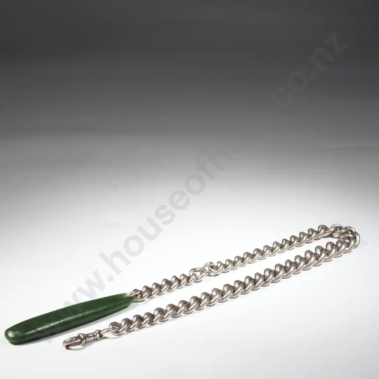 Antique Sterling SIlver Graduated Necklace w Colonial Greenstone Pendant