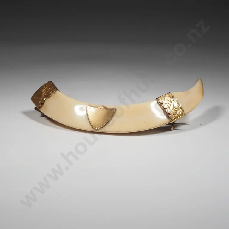 Large Antique 9ct Gold Mounted Colonial Boer Tusk Brooch
