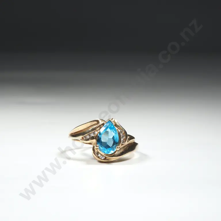14ct Gold Blue Topaz & Diamond Pendant & Chain