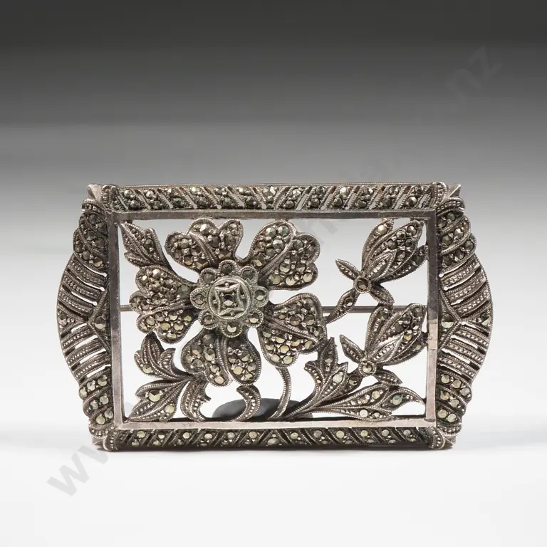Sterling Silver Marcasite Brooch With Floral Detail