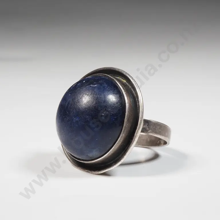 Sterling Silver Ring Set With Round Lapis Lazuli Stone