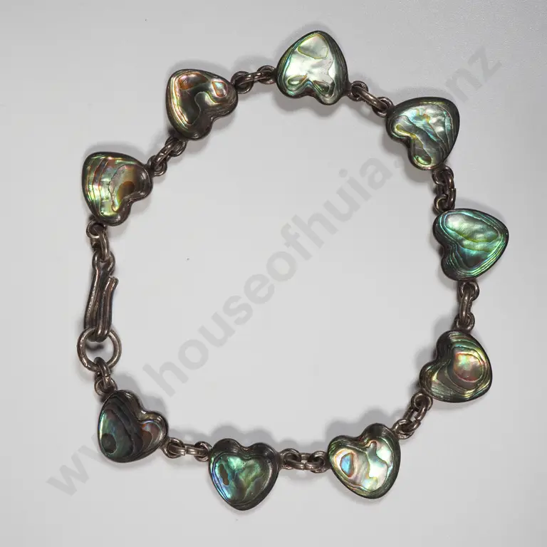 Sterling Silver Heart Shaped Paua Shell Bracelet