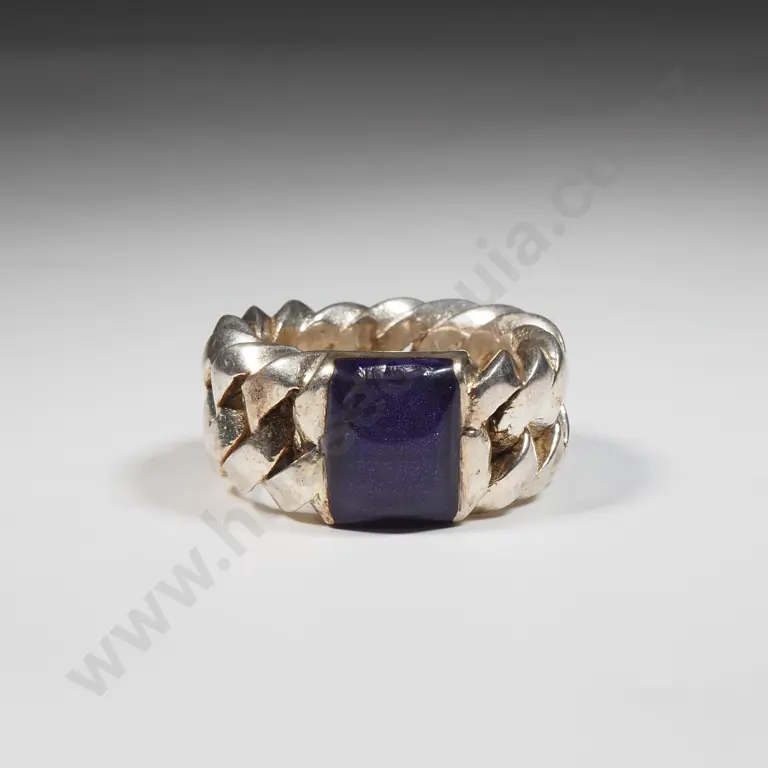 Sterling Silver Ring With A Chain Link Band & Inset With A Square Purple Stone