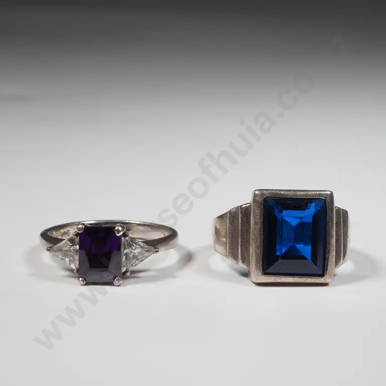 Sterling Silver & Purple Stone Ring & Sterling Silver & Blue Stone Ring