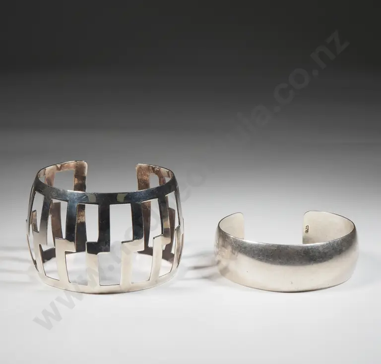 Two Sterling Silver Cuff Bracelets; One With Geometric Openwork Decoration