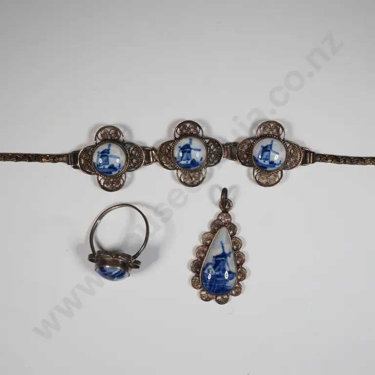 Sterling Silver Filigree Delft Bracelet, Ring & Pendant