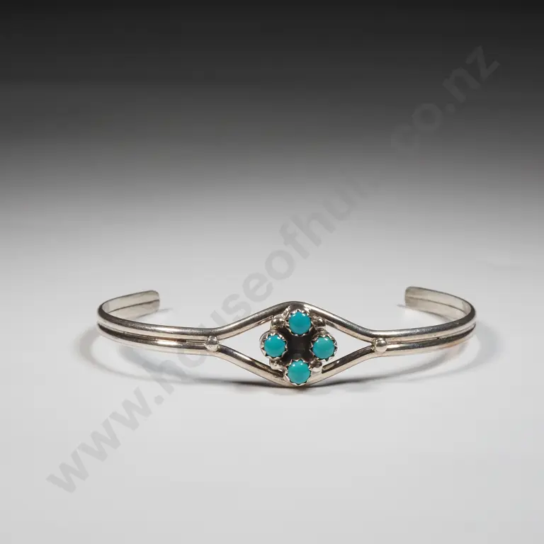 Sterling Silver Cuff Bangle Set With Turquoise