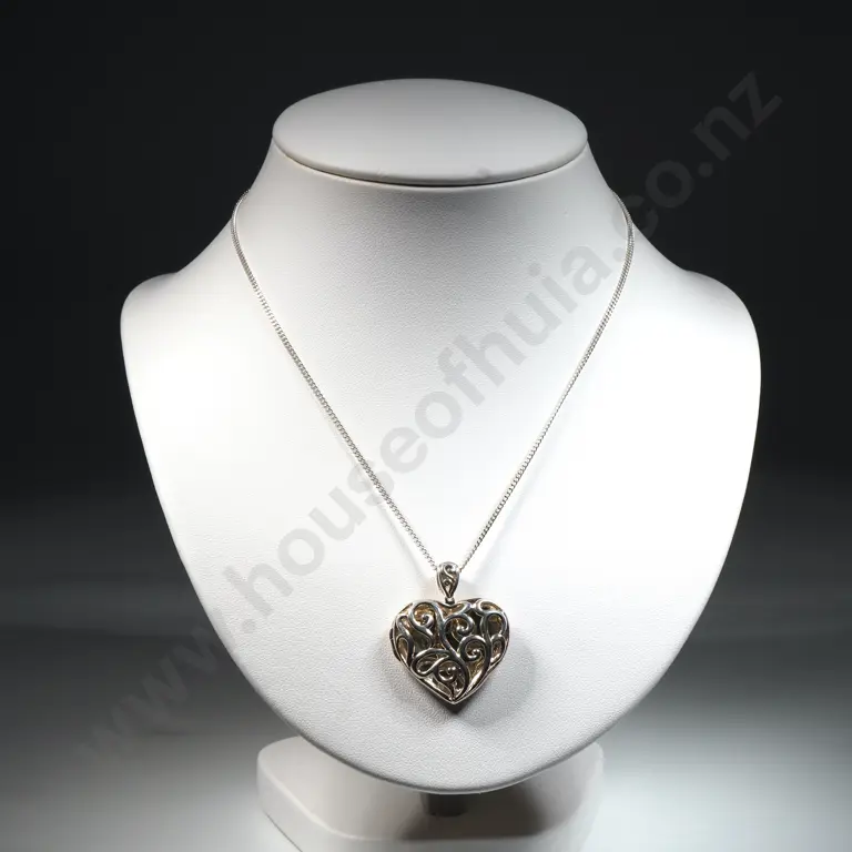 Sterling Silver Heart Shaped Open Work Heart Shaped Pendant With Chain