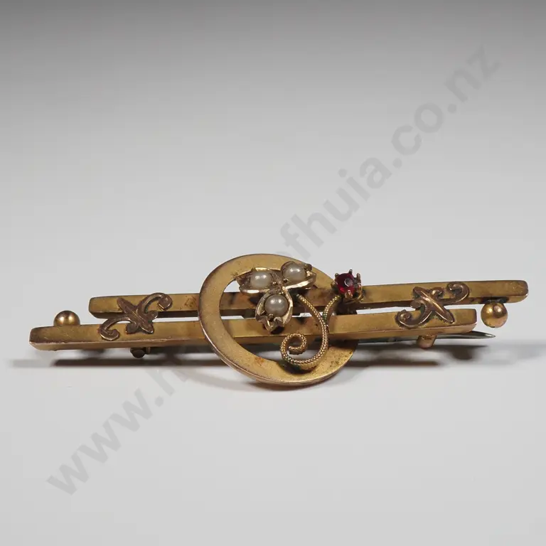 9ct Gold Brooch w Seedpearls Estimate: $120 - $180